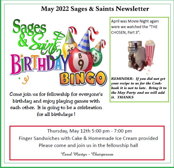 Fellowship and games. May 12th from 5-7pm at the First United Methodist Church Fellowship Hall.Images